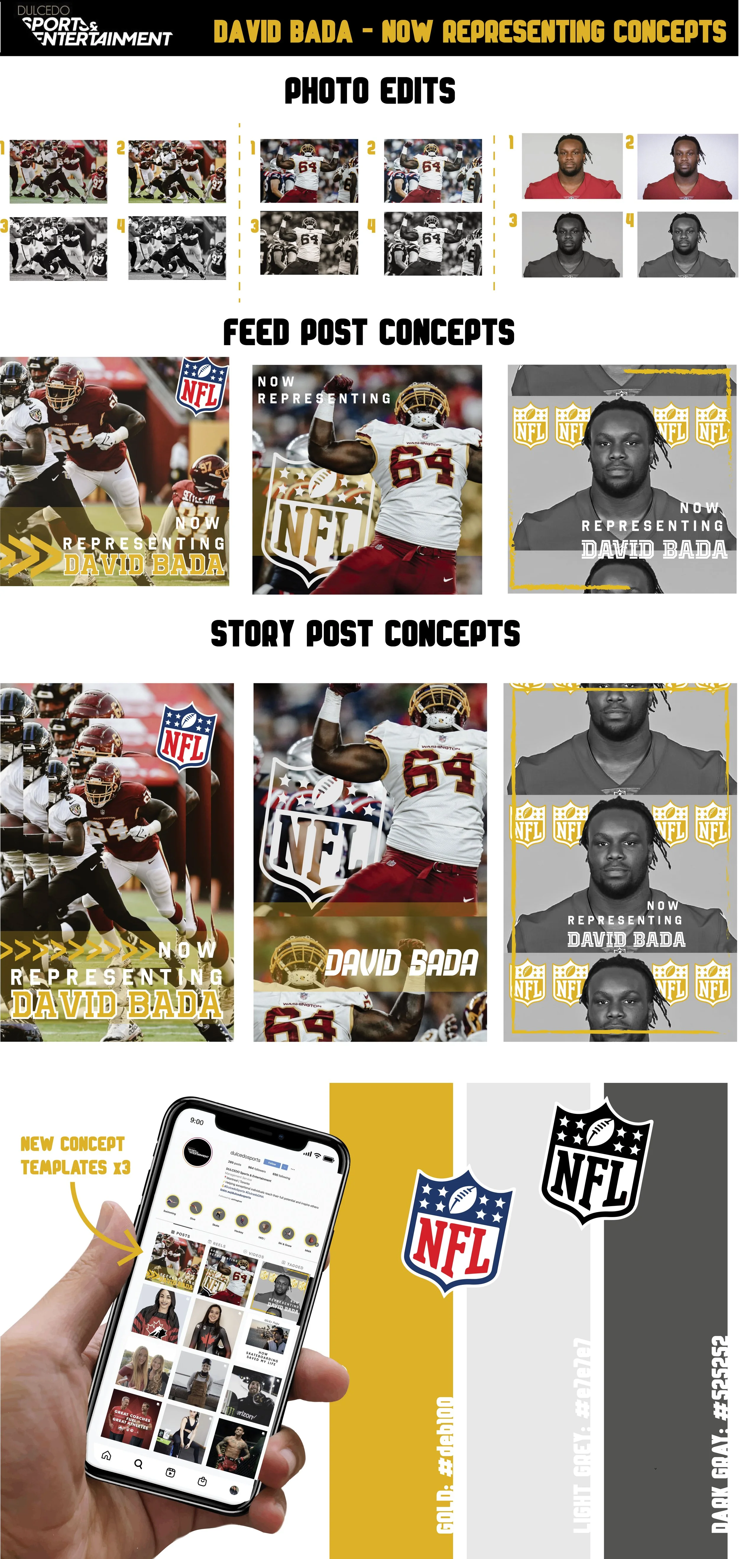 Featured below are a range of projects I worked on for the Dulcedo Sports division. These projects ranged from creating emailers to social media templates. Lots of concept work was driven from these projects and I was able to showcase the company’s updated branding style through these pieces of work